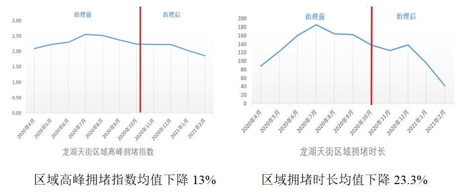 由于龙湖天街商圈虹吸效应大,导致商圈周边交通形成明显的拥堵、无序现象,主要是商业吸引造成的午间、晚间交通拥堵问题,午间高峰拥堵集中在11:00—14:00,晚间高峰拥堵集中在18:00~21:30。